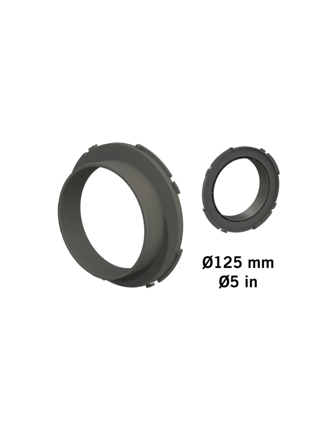 Conector de 125mm para usar en conjunto con el "Ducting Flange" de Secret Jardin en todos los armarios con tubos de 16mm de diametro.