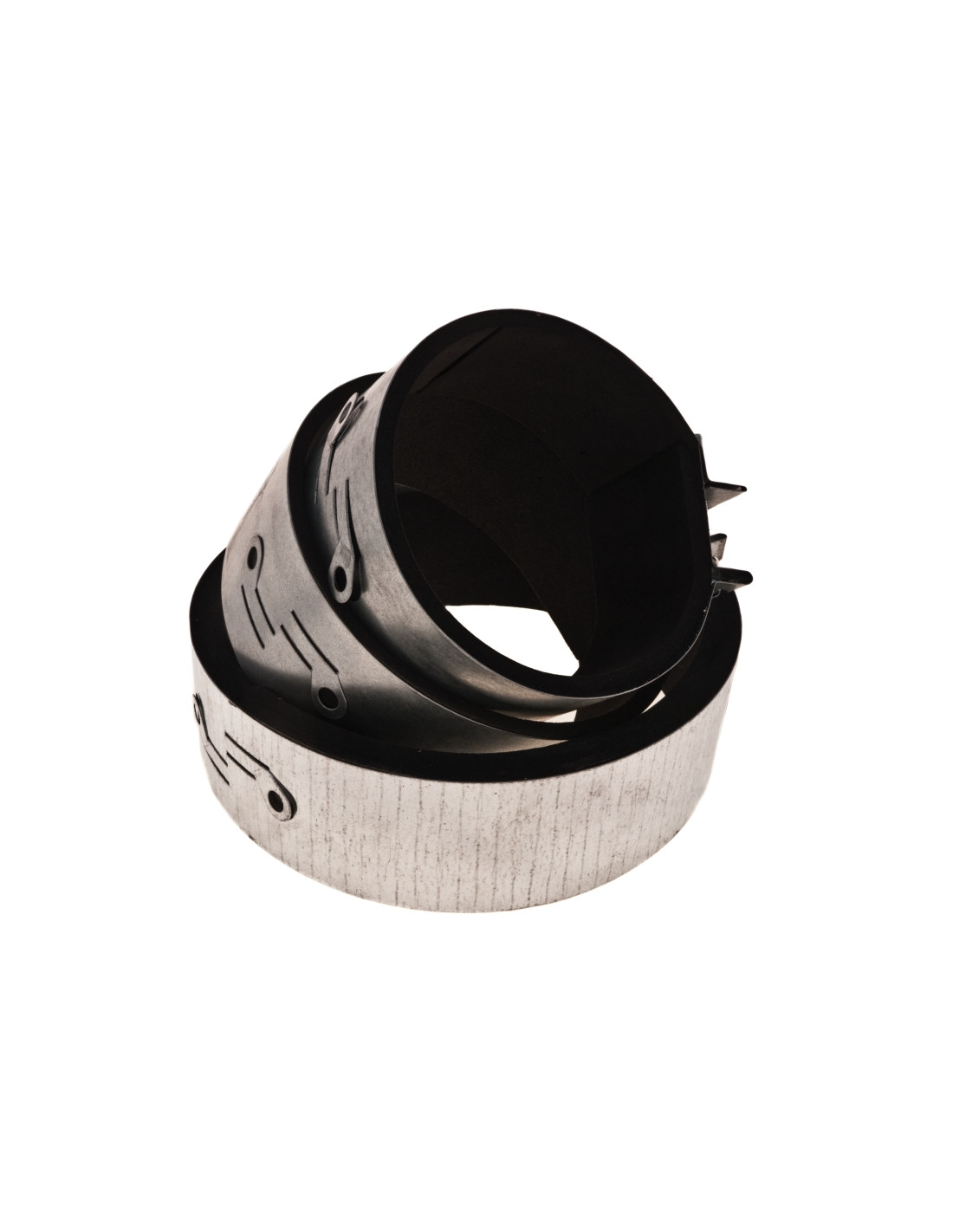 Brida de acero galvanizado con recubrimiento de neopreno interior que nos permite montar y desmontar de forma rapida conexiones de sistemas de ventilacion.