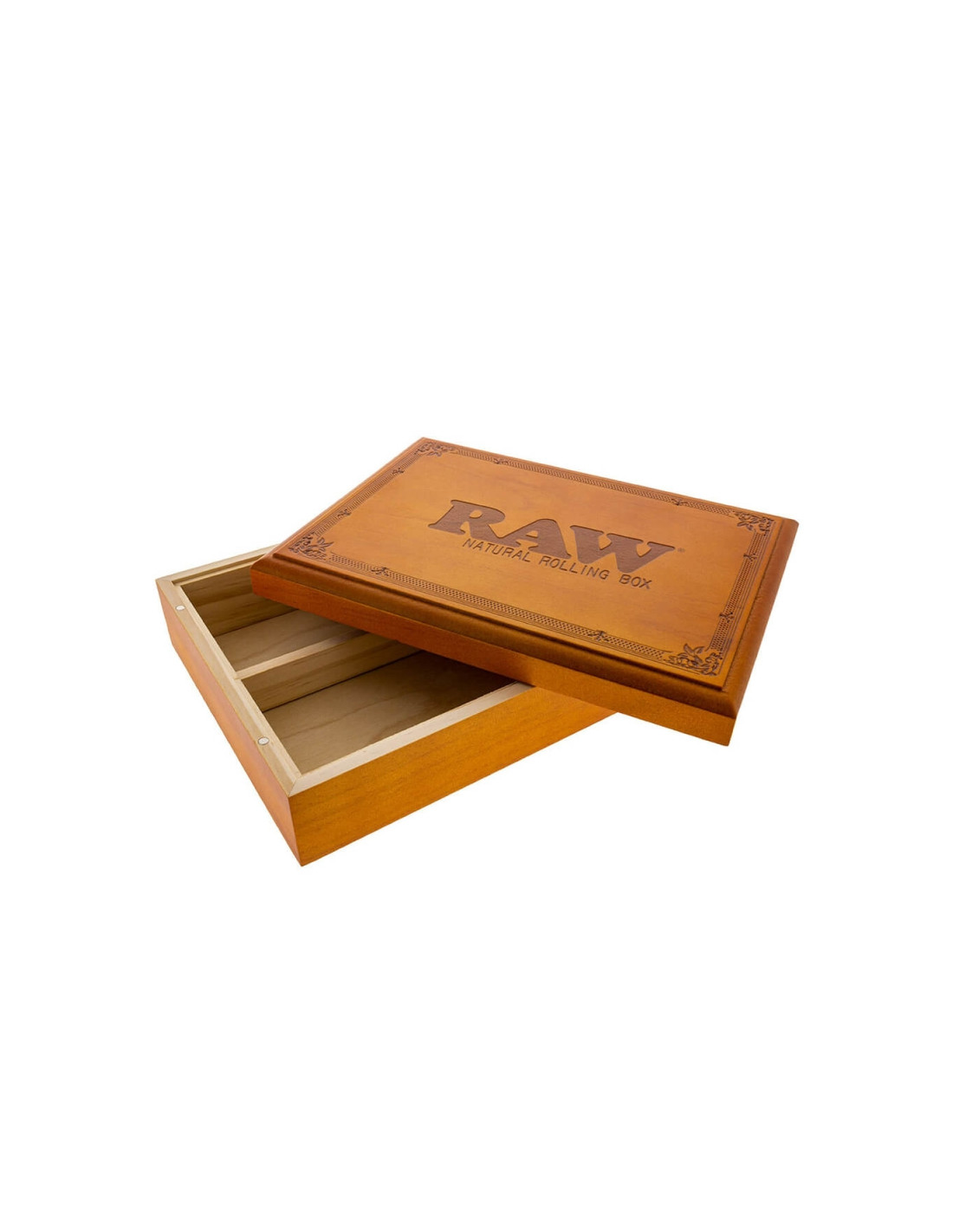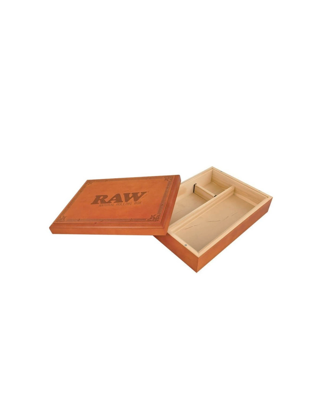 Lleva incluido pequeños imanes para su cierre magnético además su pata con grabado en relieve el logo de RAW y pequeña decoraciones en las esquinas de la tapa