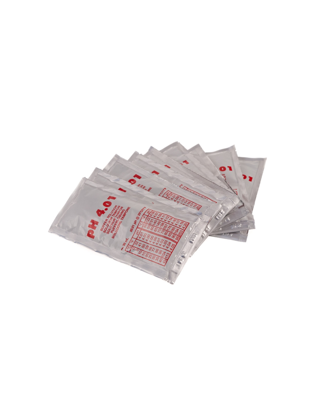 Solución de calibración pH disponible en sobres de 20 ml para una rápida y precisa calibración.