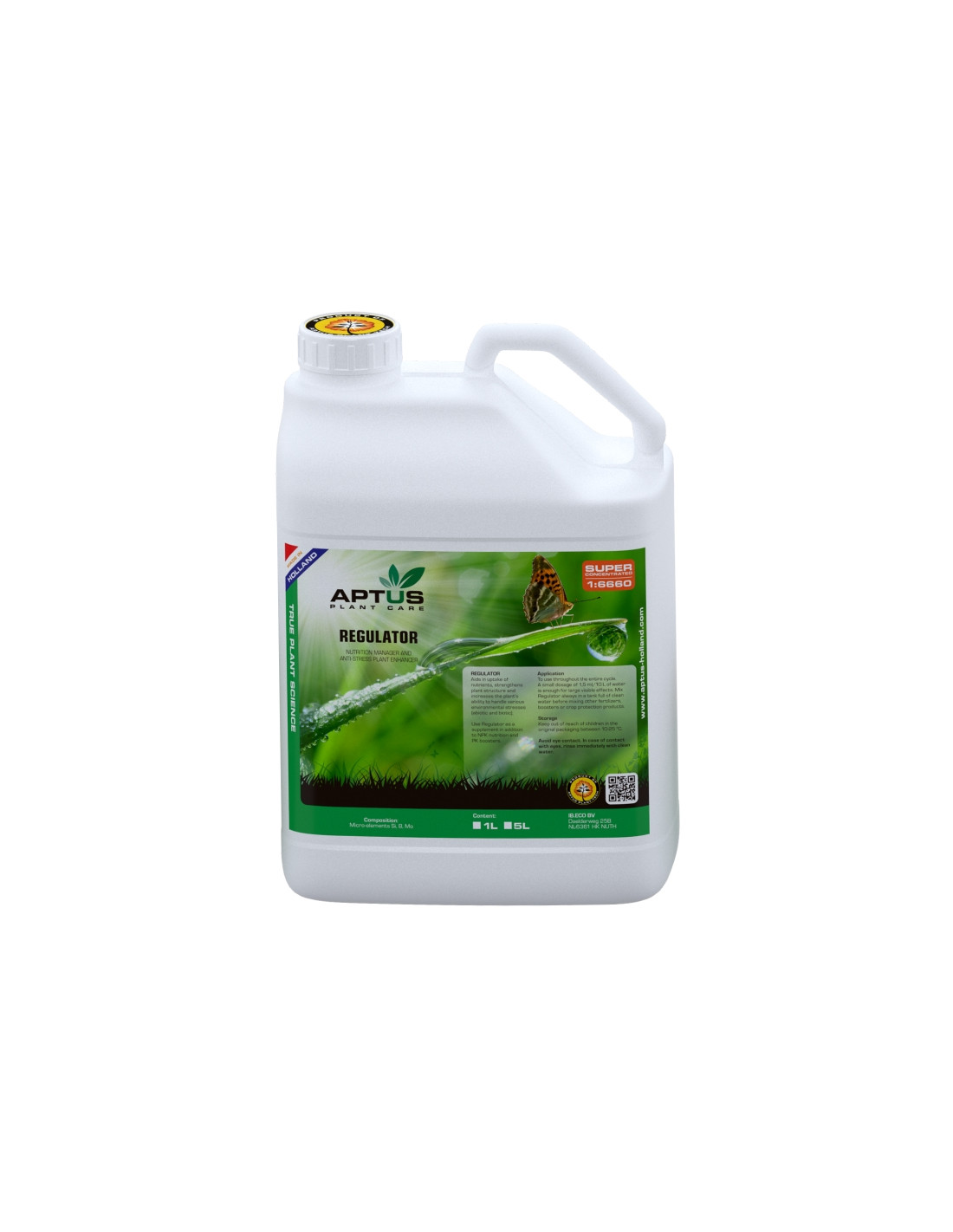 Regulator es un producto para el cuidado de las plantas que regula todos los procesos de crecimiento y floración de las mismas. Regulator fortalece los cultivos, regula la absorción de nutrientes e incrementa la proporción de material seco. Los efectos de Regulator son más visibles durante los periodos de estrés. Por ejemplo, durante los periodos de calor, Regulator protege a la planta del estrés térmico e hídrico.