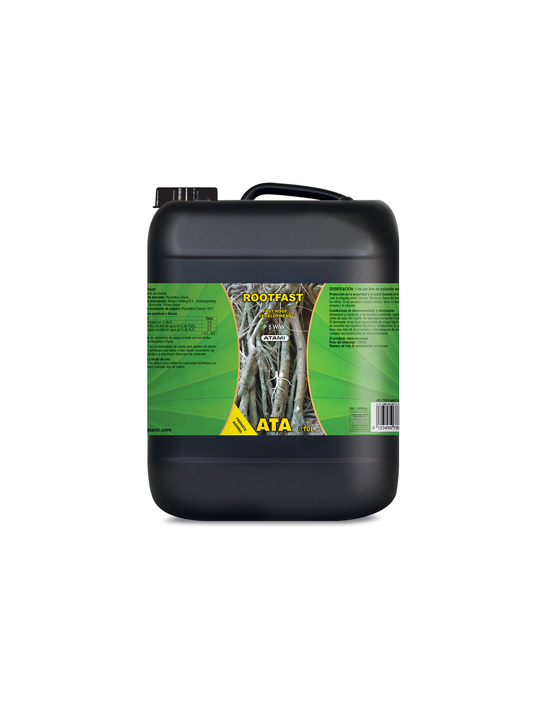 Ata Rootfast es un estimulador de la raiz, 100% vegetal, el cual favorece una óptimal producción radicular y aumenta las defesas naturales de la planta. Se puede aplicar en todo tipo de medios. Aplicaciones: Diariamente durante la 1ra y 2da semana, en cada sesión de regado. Preste Atencion: Guardar en sitio fresco y agitar bien antes de usarlo. Mantener fuera del alcance de los nios. Solamente para uso domestico. No apto para el consumo. Derivado: Laminara digitata y fosfato amónico.