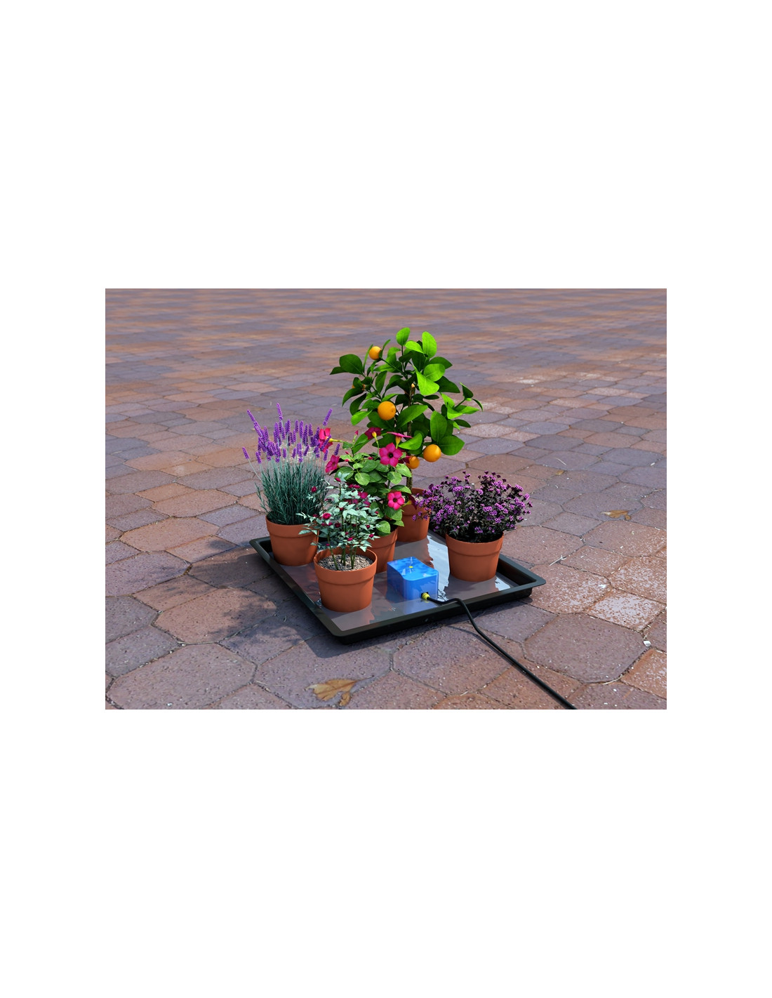 Este sistema de bajo costo, flexible se puede montar en pocos minutos y contiene todos los accesorios necesarios para la conexión a un depósito de su elección. Simplemente necesita un recipiente de agua con una capacidad mínima de 30 litros y una bandeja de la jardinería basada plana con una profundidad mínima de 30 mm.
