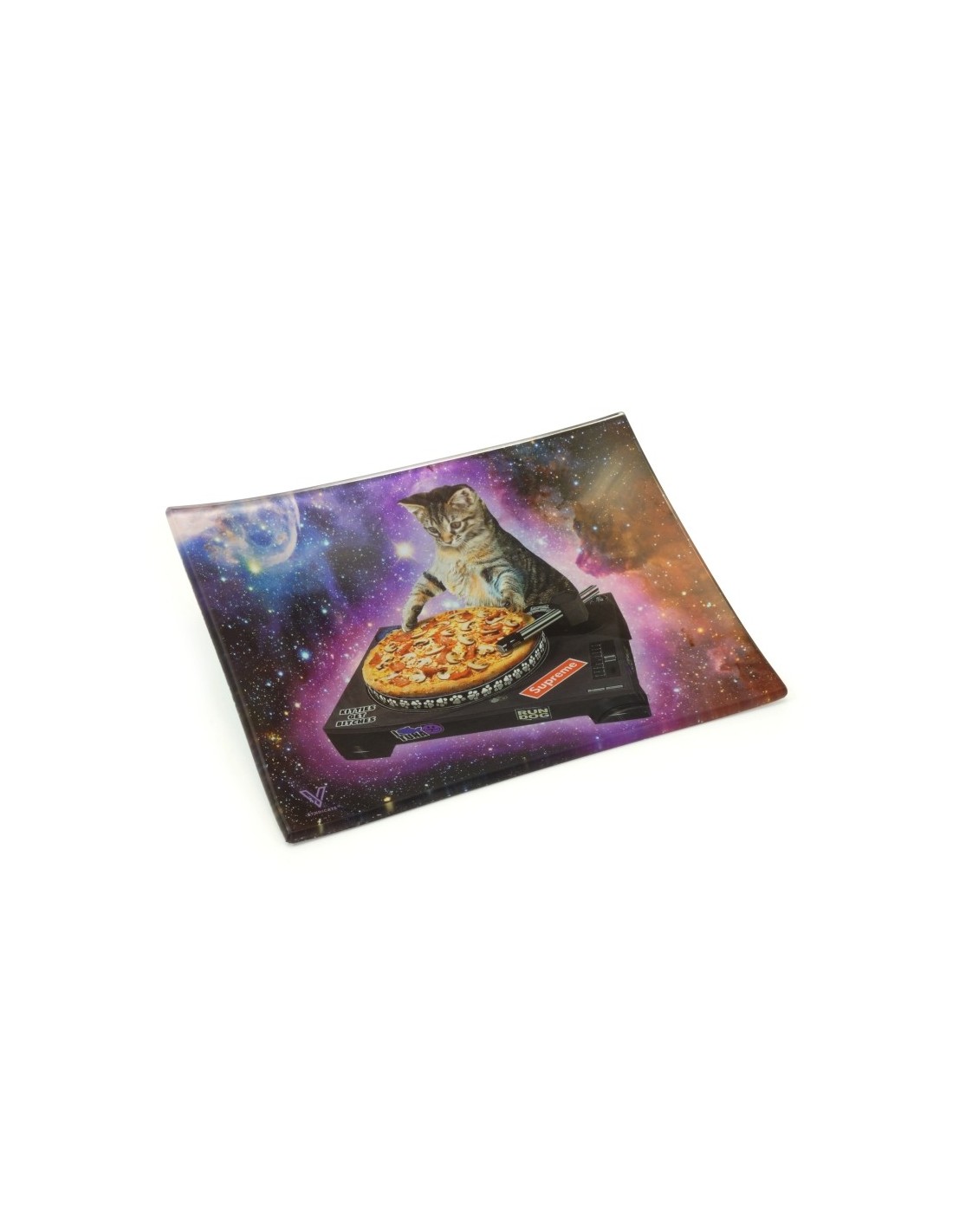 BANDEJA DE CRISTAL PARA LIAR V-SYNDICATE DJ CAT PEQUEÑA (16X12CM) * BANDEJAS DE FUMADOR