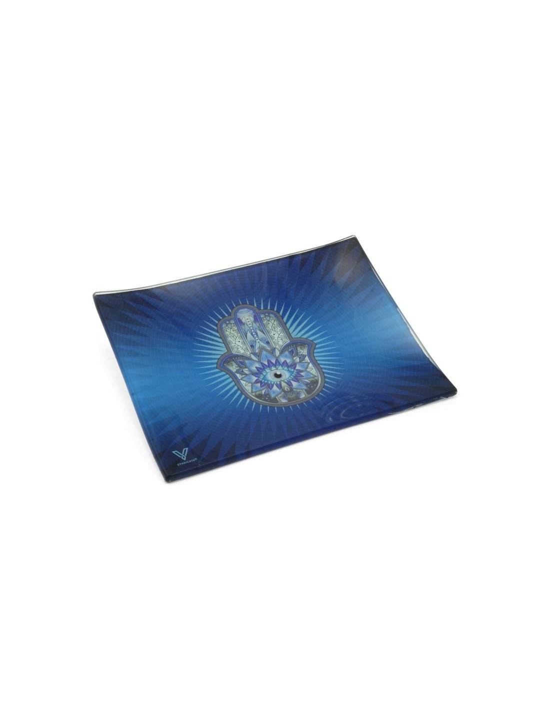 BANDEJA DE CRISTAL PARA LIAR V-SYNDICATE HAMSA BLUE PEQUEÑA (16X12CM) * BANDEJAS DE FUMADOR