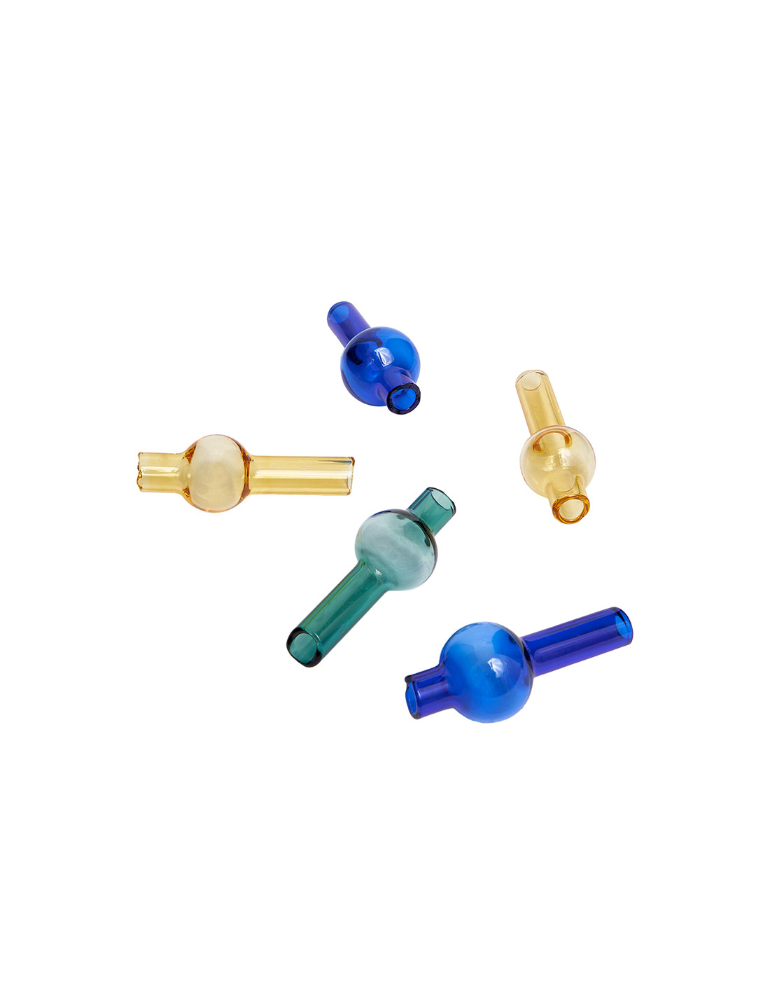 Disfruta del magnífico set de 5 carb caps bidireccionales con forma de burbuja en diferentes colores de Colorado Stoner Tools. Estos carb caps de cristal se adaptan fácilmente a la mayoría de los bangers, bongs o pipas de agua, lo que te permitirá disfrutar de tus concentrados favoritos de una manera más eficiente y agradable.
