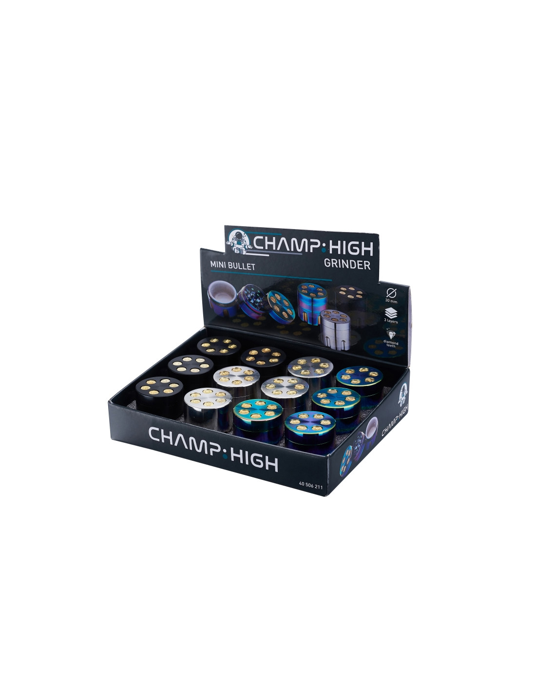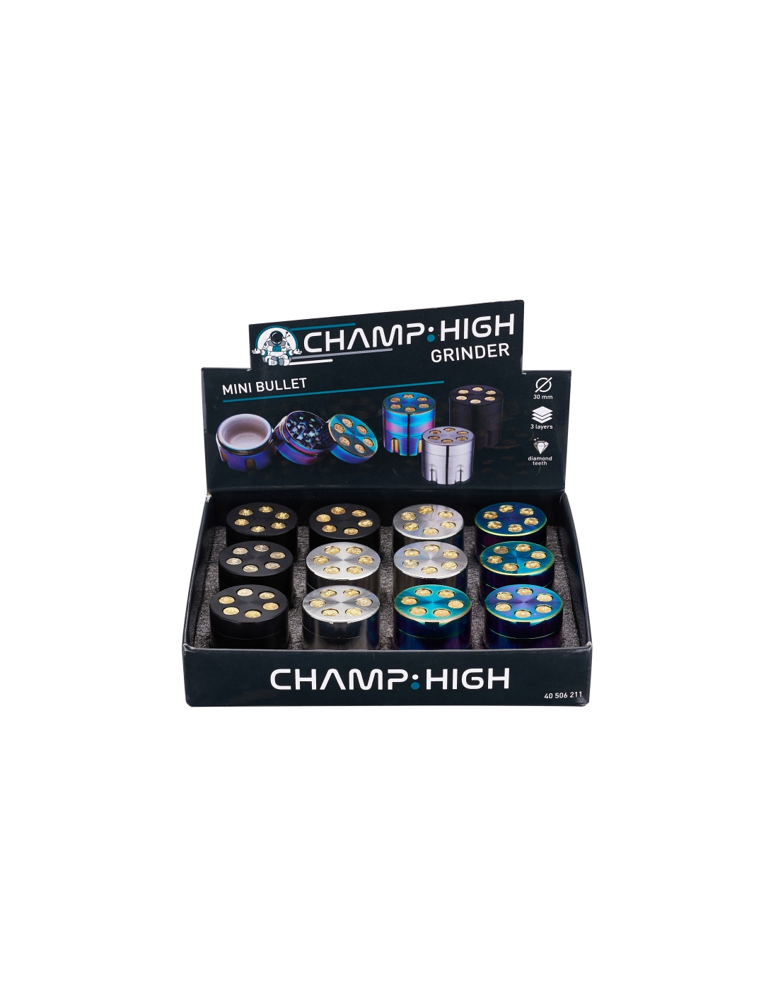 Atractivo grinder de 3 partes y acabado llamativo de la marca Champ High con 30 mm de diámetro. Muy buenos resultados gracias a sus dientes afilados en forma de rombo