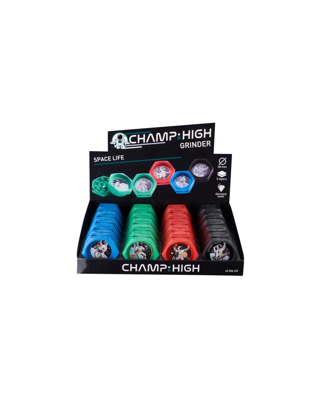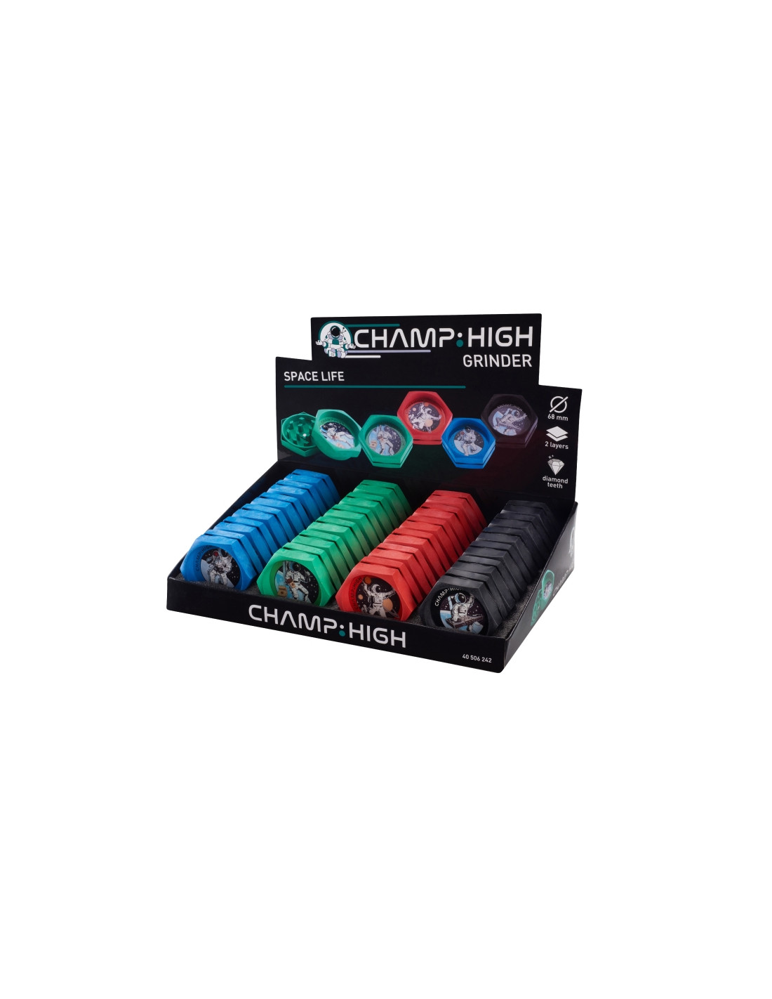 24 grinders de 2 partes en un atractivo display.