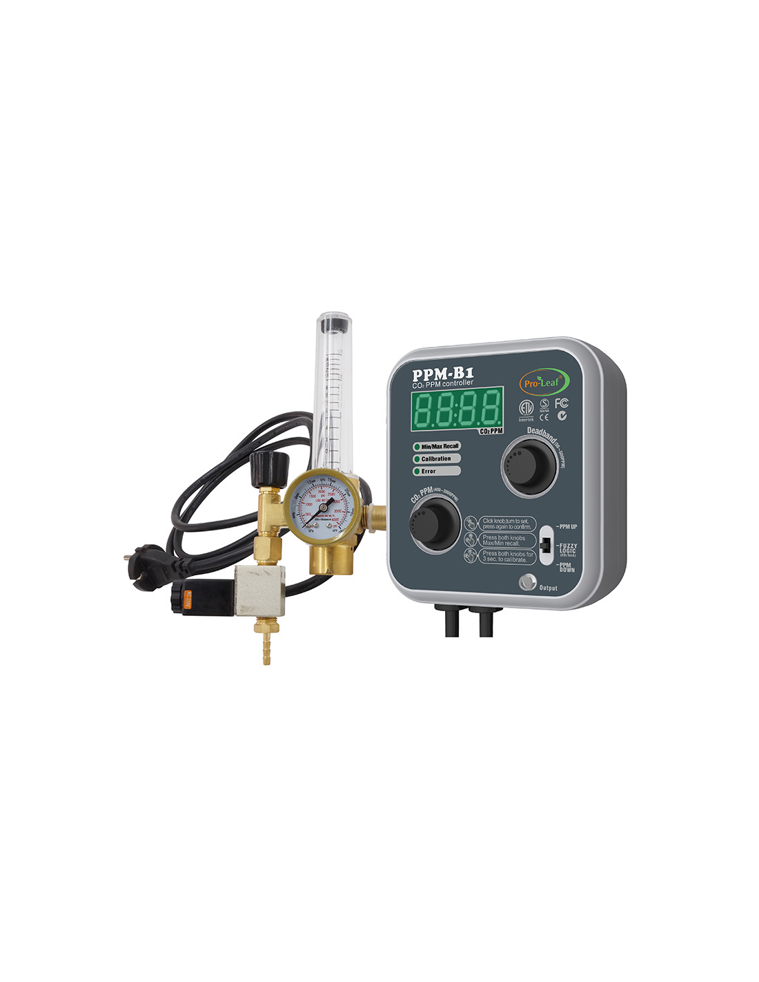 El kit contiene: Controlador digital Pro Leaf PPM-B1 Regulador de CO2 Pure factory.