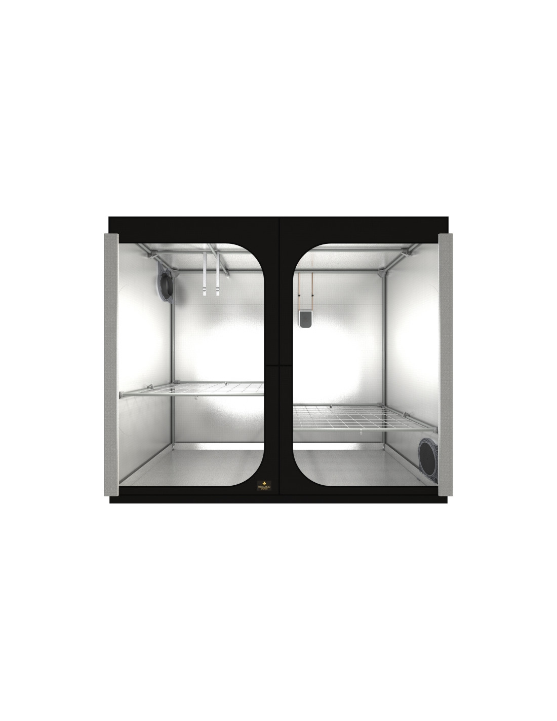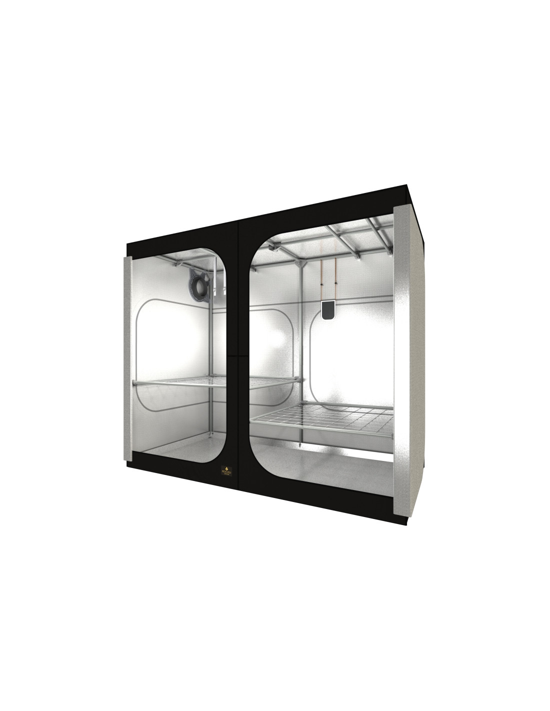 La gama Dark Room tiene todas las ventajas de la gama Dark Street, y mucho más. Está fabricado con una estructura de acero inoxidable de Ø25mm, que los convierte en los más duraderos del mercado. Puedes optimizar su ventilación gracias al sistema de Ducting Flange incluido. También ofrece aberturas de 360° para un fácil acceso a sus plantas, y tiene un suelo con un recubrimiento fibroso súper resistente.