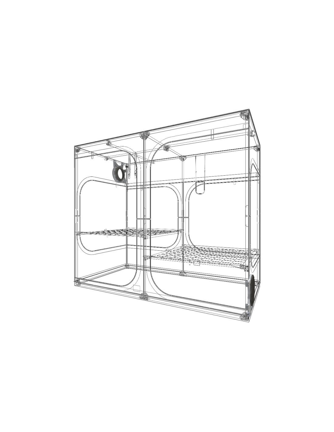 La gama Dark Room tiene todas las ventajas de la gama Dark Street, y mucho más. Está fabricado con una estructura de acero inoxidable de Ø25mm, que los convierte en los más duraderos del mercado. Puedes optimizar su ventilación gracias al sistema de Ducting Flange incluido. También ofrece aberturas de 360° para un fácil acceso a sus plantas, y tiene un suelo con un recubrimiento fibroso súper resi