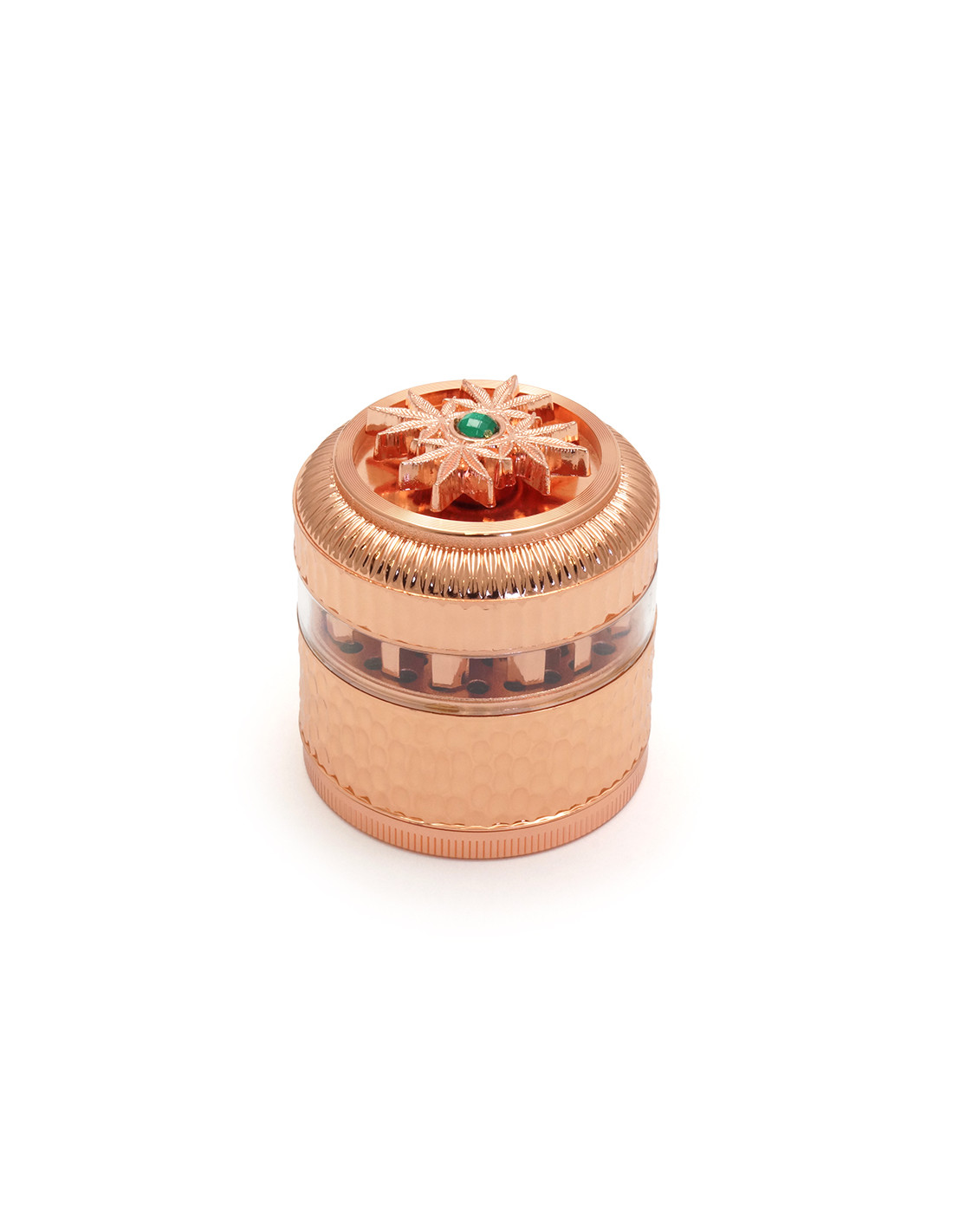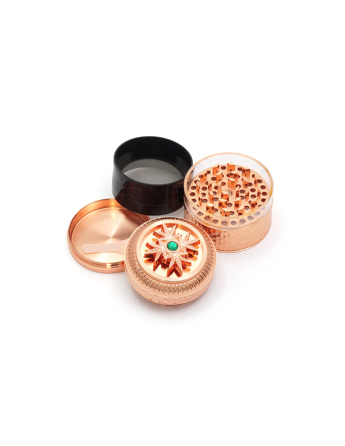 Grinder de 4 partes de aspecto muy noble con un diseño diferente a lo habitual, 52 x 56 mm.