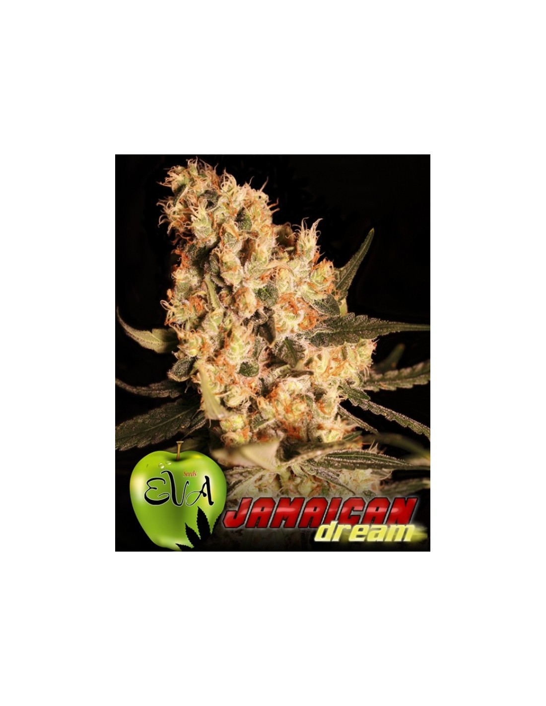 Perfecta tanto para cultivo interior como exterior, Jamaican Dream es una planta fuerte, con estructura tipo árbol de navidad, de muy fácil cultivo y floración rapidísima (42-45 días), que produce gran cantidad de generosos y gruesos cogollos con abundante cantidad de tricomas. Olor a limas frescas y pino, y sabor dulce, elegante y suave con un tono a café. Produce un efecto fuerte, alegremente sativo, muy activo, con un suave efecto indico final.