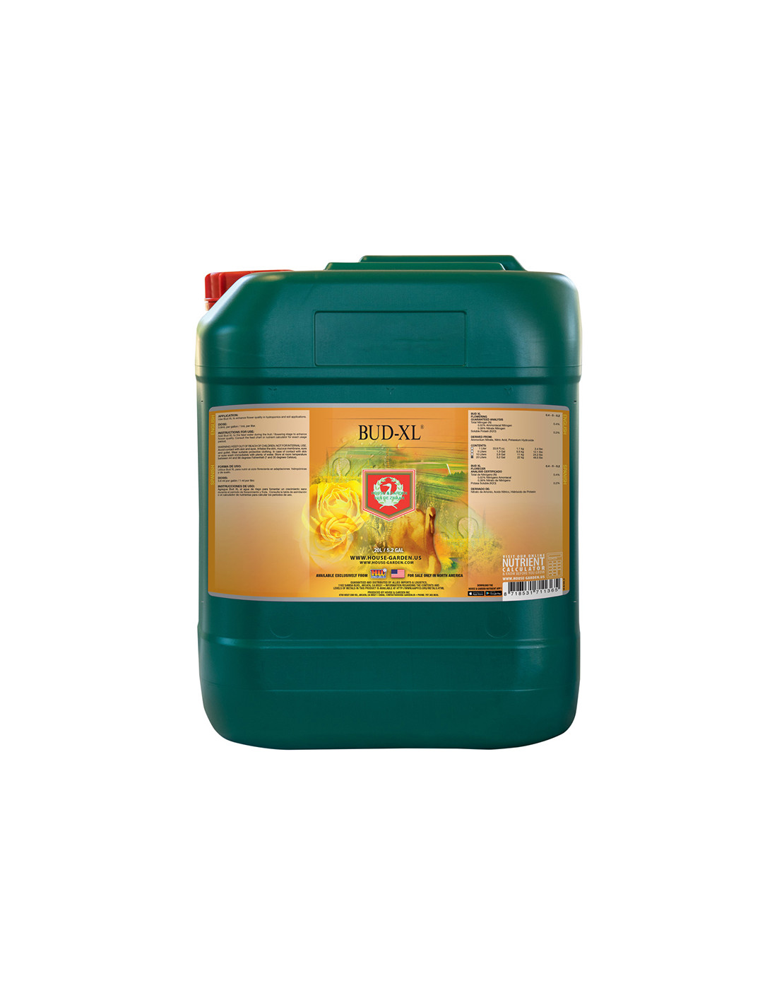 House & Garden Bud-XL utiliza procesos de enzimas para extraer azúcares de las brácteas grandes para su almacenamiento en las frutas o flores de la planta. Esto lleva a frutas más grandes, más dulces y más robustas. Las flores crecerán y mejorarán en color y calidad.