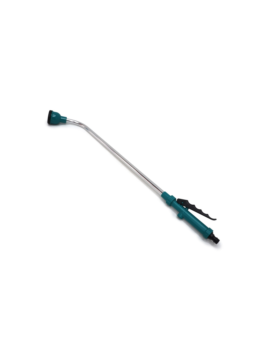 Lanza de riego de plástico y acero inoxidable, 82 cm de longitud, con botón interruptor.
