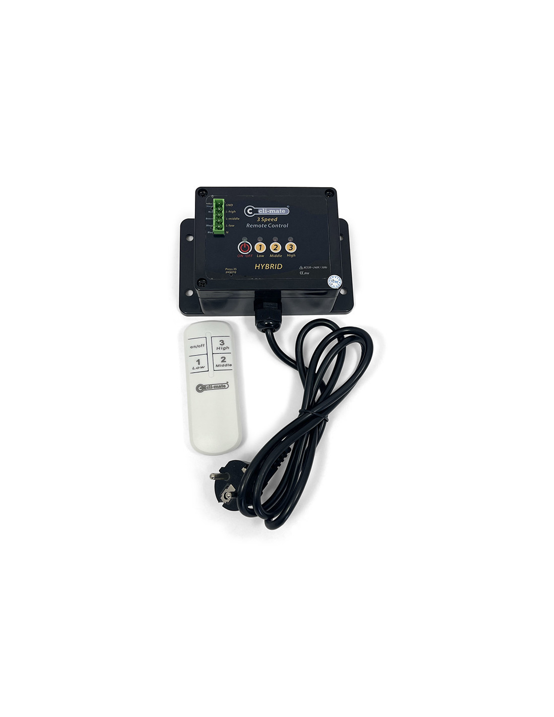 Fan controller que incluye mando a distancia con alcance de 25 m. Selecciona entre 3 velocidades.