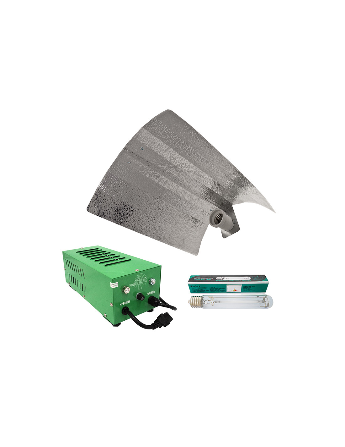 KIT BALASTRO PURE LIGHT 600 W CERRADO V2 + BOMBILLA FERTRASO 600W HPS E40 FITTING + REFLECTOR STUCO