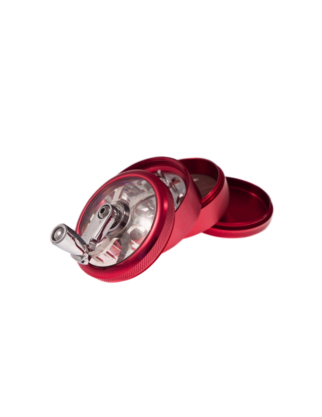 Polinizador de cuatro partes con la parte superior transparente , que para picar lleva una pequeña manivela que al gira los dientes de la parte superior sin necesidad de girar esta completamente con la mano