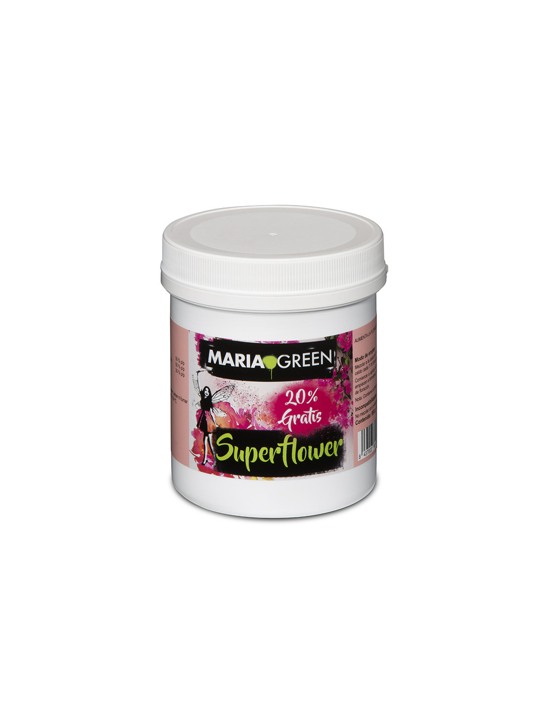 Maria Green Superflower es uno de los fertilizantes sólidos solubles en agua más productivos del mercado. Con solo 3 gramos por cada 10 litros de agua estimula la floración y el desarrollo de las raíces. lo que se traduce en unas plantas más fuertes y productivas. Es además un producto de lo más versátil y se adapta tanto a planes de cultivo minerales como orgánicos.