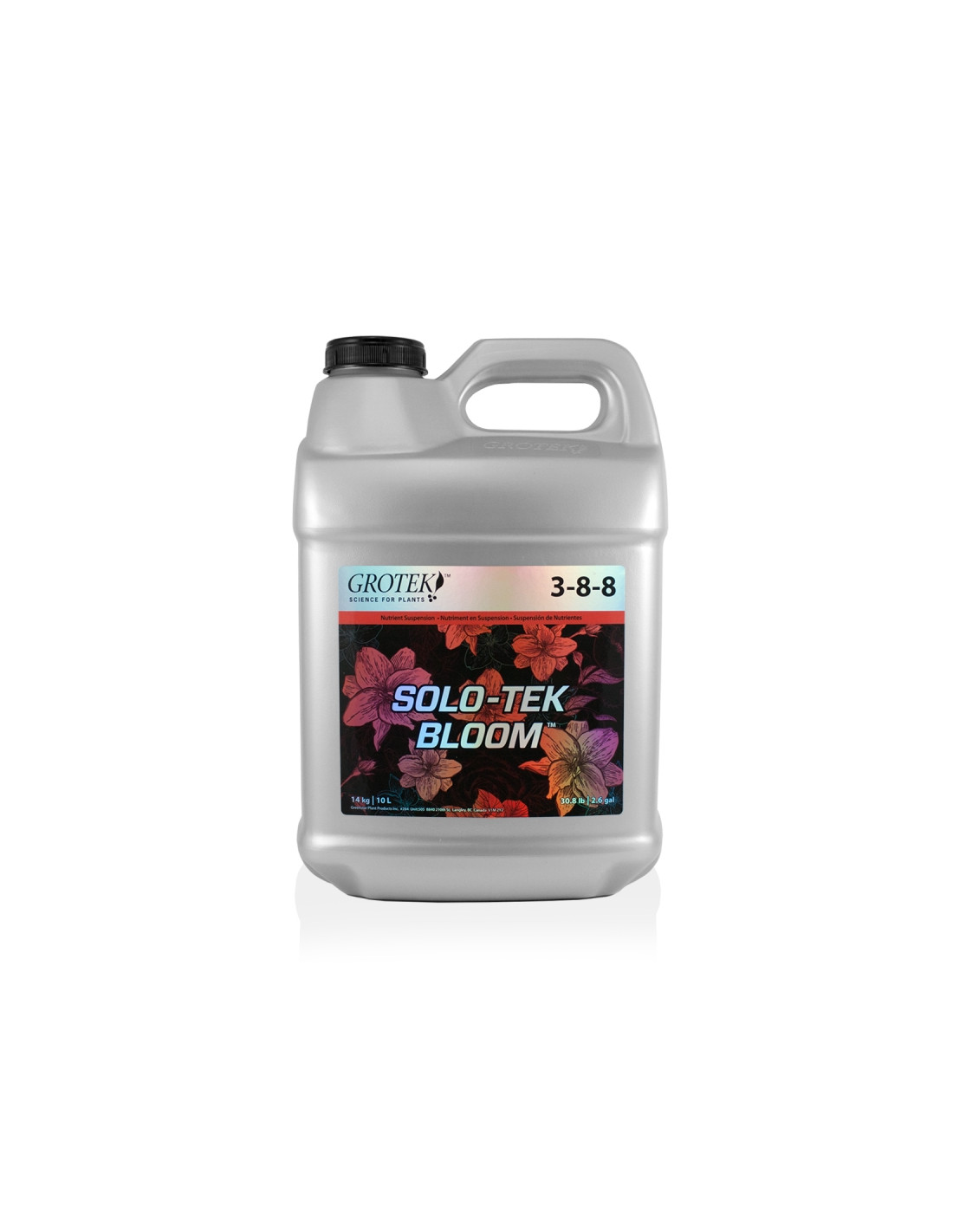 Solo-Tek Bloom es una suspensión única de una sola parte, diseñada para el uso durante la etapa de desarrollo floral. La fórmula proporciona todos los nutrientes primarios y otros esenciales. La fórmula también contiene compuestos orgánicos, tales como kelp (Algas marinas), que ofrecen beneficios adicionales para las plantas. Este producto concentrado es perfecto para los jardines, huertas, macetas, arbustos, árboles y plantas exóticas y de interior.