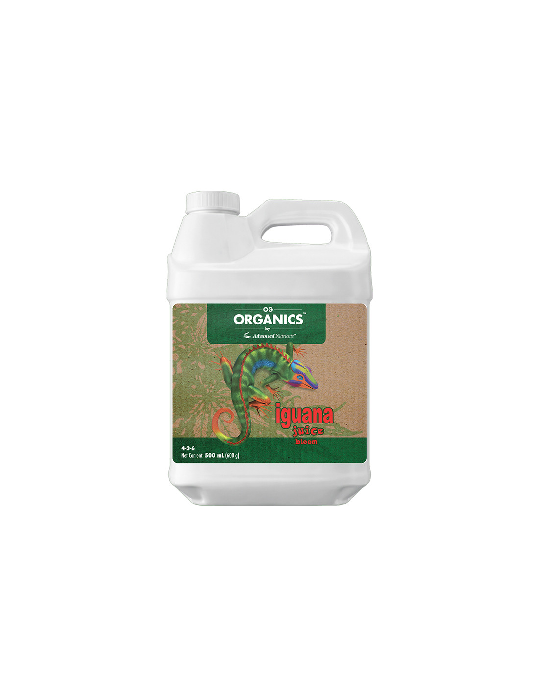 OG Organics™ Iguana Juice® Bloom es un material de entrada orgánico completo para la fase de floración diseñado para los cultivadores orgánicos más exigentes. Hemos diseñado esta solución certificada por OMRI y CDFA-OIM con hidrolizado de proteína de pescado de agua dulce e hidrolizado de proteína de soya, para que sus plantas absorban los macronutrientes y micronutrientes quelados que necesitan p