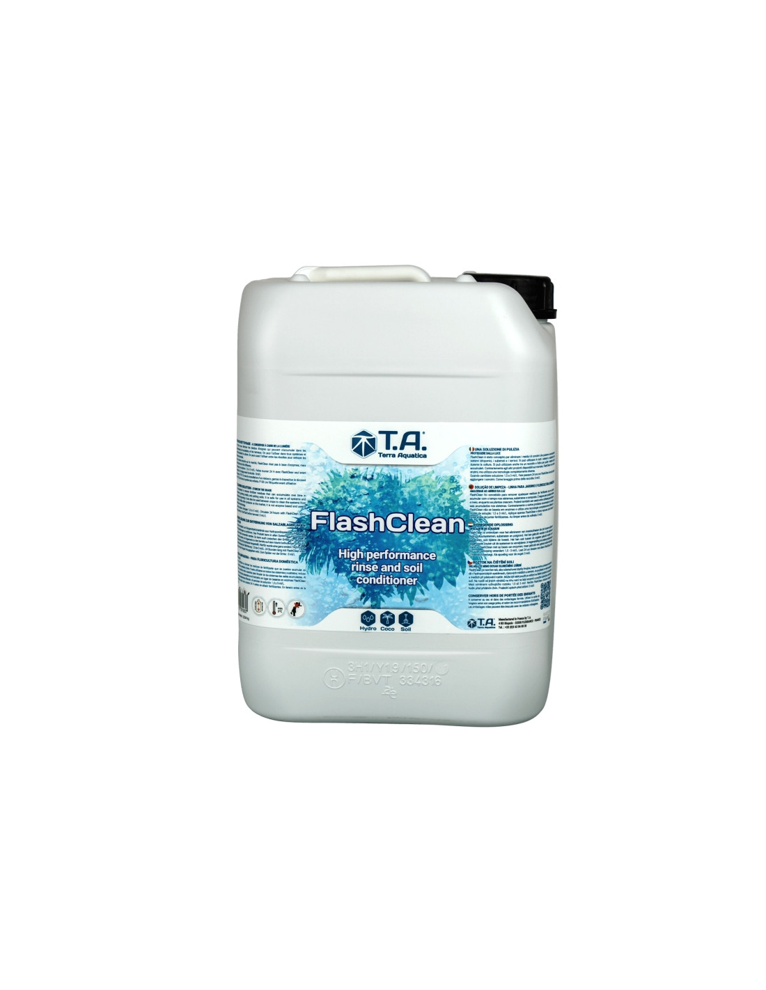 La finalidad de FLASHCLEAN es eliminar los residuos de fertilizante que se pueden acumular en sistemas hidropónicos, sustratos y tierra. Puede utilizarse en todos los sistemas y sustratos, incluso durante el cultivo, y también entre cosechas para limpiar de los sistemas las sales acumuladas. Al contrario que otros productos presentes en el mercado, en lugar de basarse en enzimas FlashClean utiliza