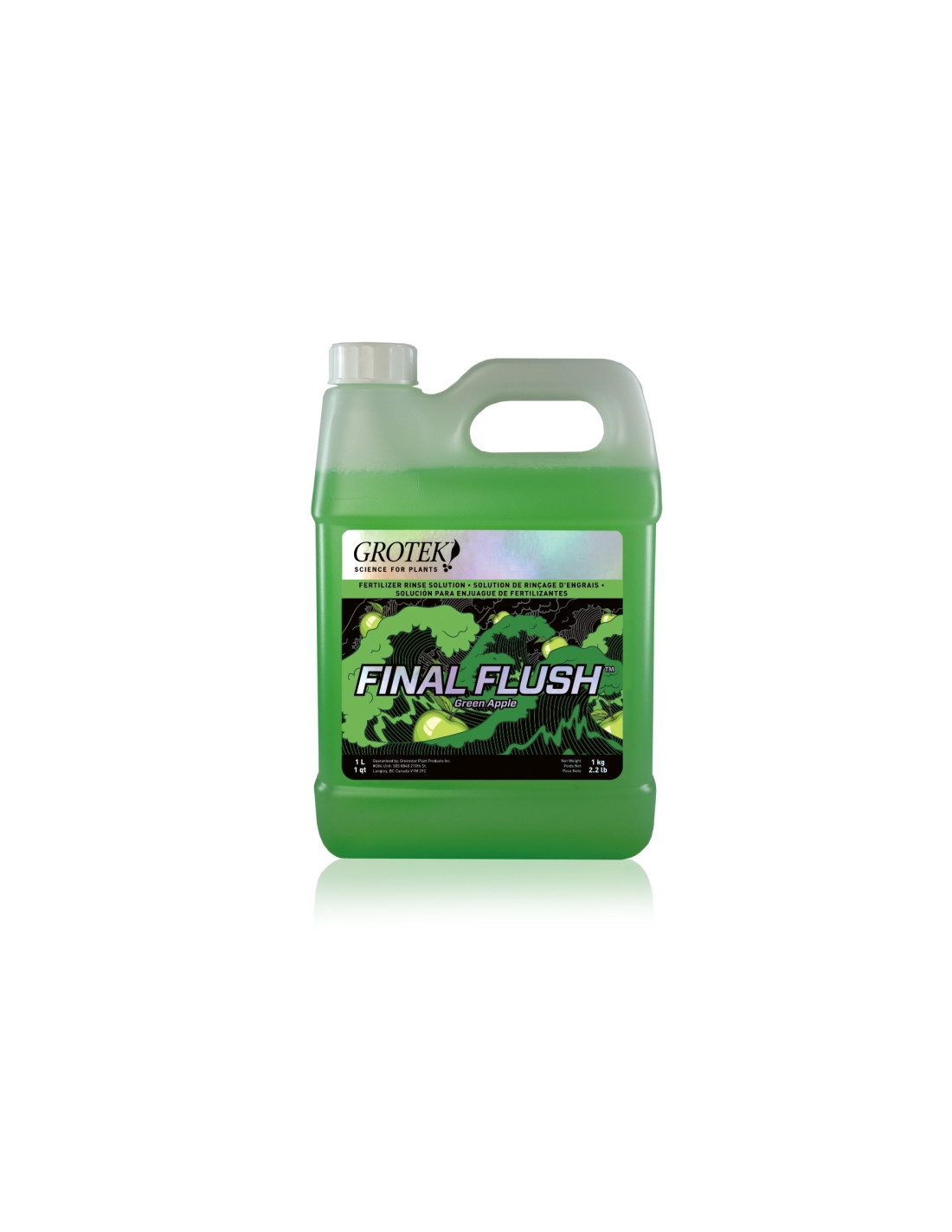 La salinidad puede convertirse en un problema grave para aquellos jardineros que cultiven mediante macetas y sistemas de recirculación. La acumulación de sal puede causar problemas en las plantas en crecimiento y la fruta puede resultar amarga. Final Flush es un agente de enjuague diseñado para corregir los problemas de sobrealimentación durante la producción de cultivos mientras elimina la sal excesiva del medio durante las últimas etapas de crecimiento vegetal.