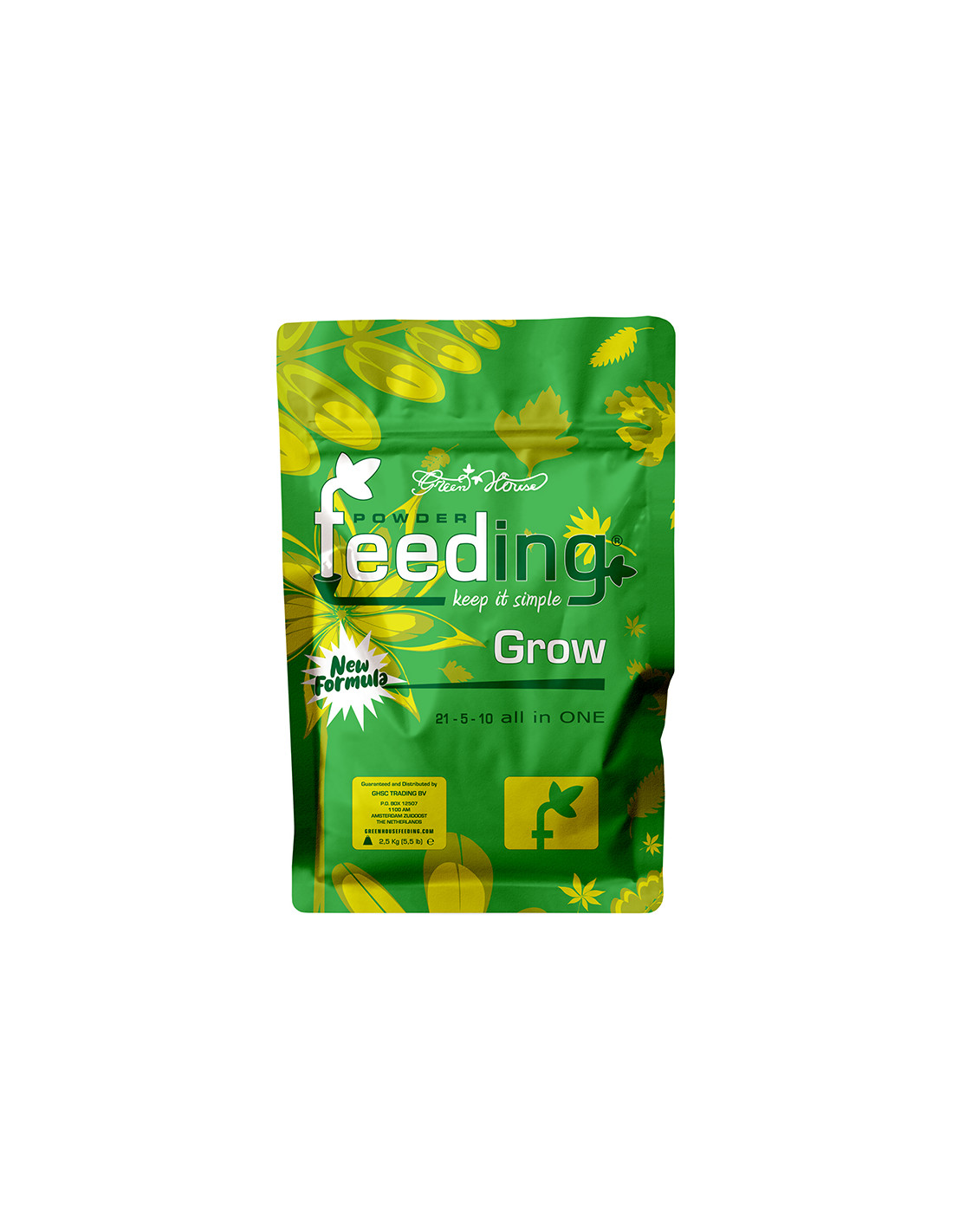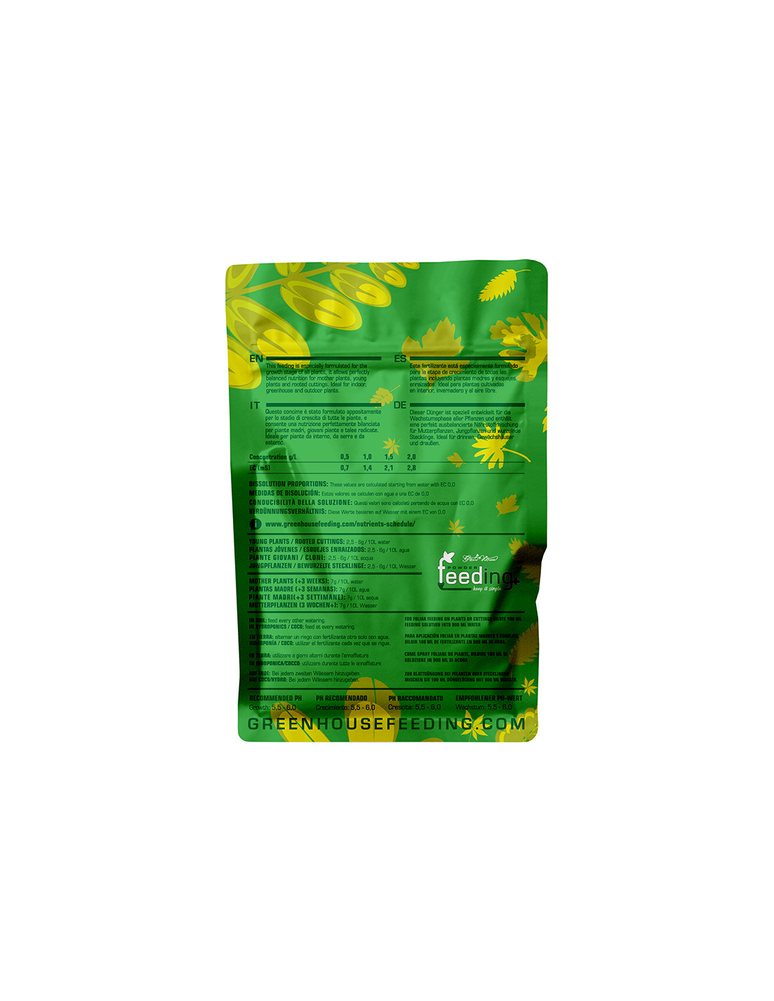 Green House Powder Feeding Grow es un fertilizante mineral especialmente formulado para la fase vegetativa de las variedades de cannabis. Su nueva fórmula cumple con la normativa vigente. Aporta macro y micronutrientes esenciales para un desarrollo saludable, garantizando un crecimiento y vigor óptimos. Puede utilizarse en tierra, coco, hidroponía y aeroponía con los mismos excelentes resultados.