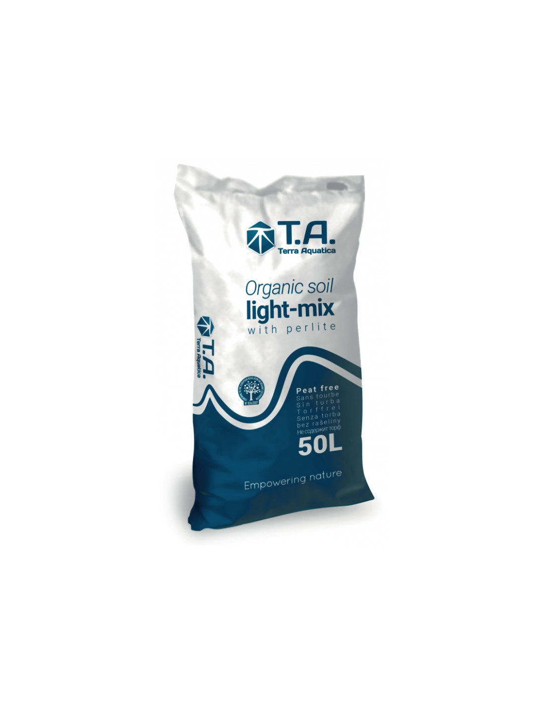 T.A Organic soil light-mix es un producto bajo en carbono que se obtiene mezclando subproductos reciclados de las industrias existentes: compost orgánico, fibra de coco de calidad superior y fibra de madera, hábitat natural de Trichoderma harzianum, un organismo fúngico altamente beneficioso. A esta mezcla le agregamos perlita para la estructura y la aireación, creando un ambiente ideal para sus plantas y todo tipo de vida beneficiosa.