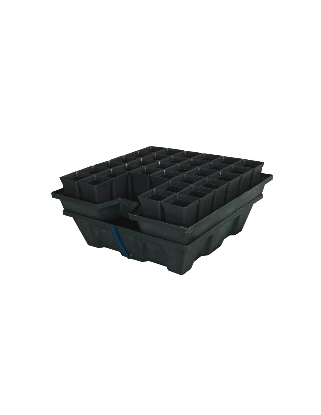 El sistema Ebb & Grow, funciona mediante subirrigación: La solución nutritiva inunda el sustrato y vuelve hasta el depósito cuando la bomba se detiene. Este flujo y reflujo regular de la solución permite una excelente oxigenación del sistema radicular.