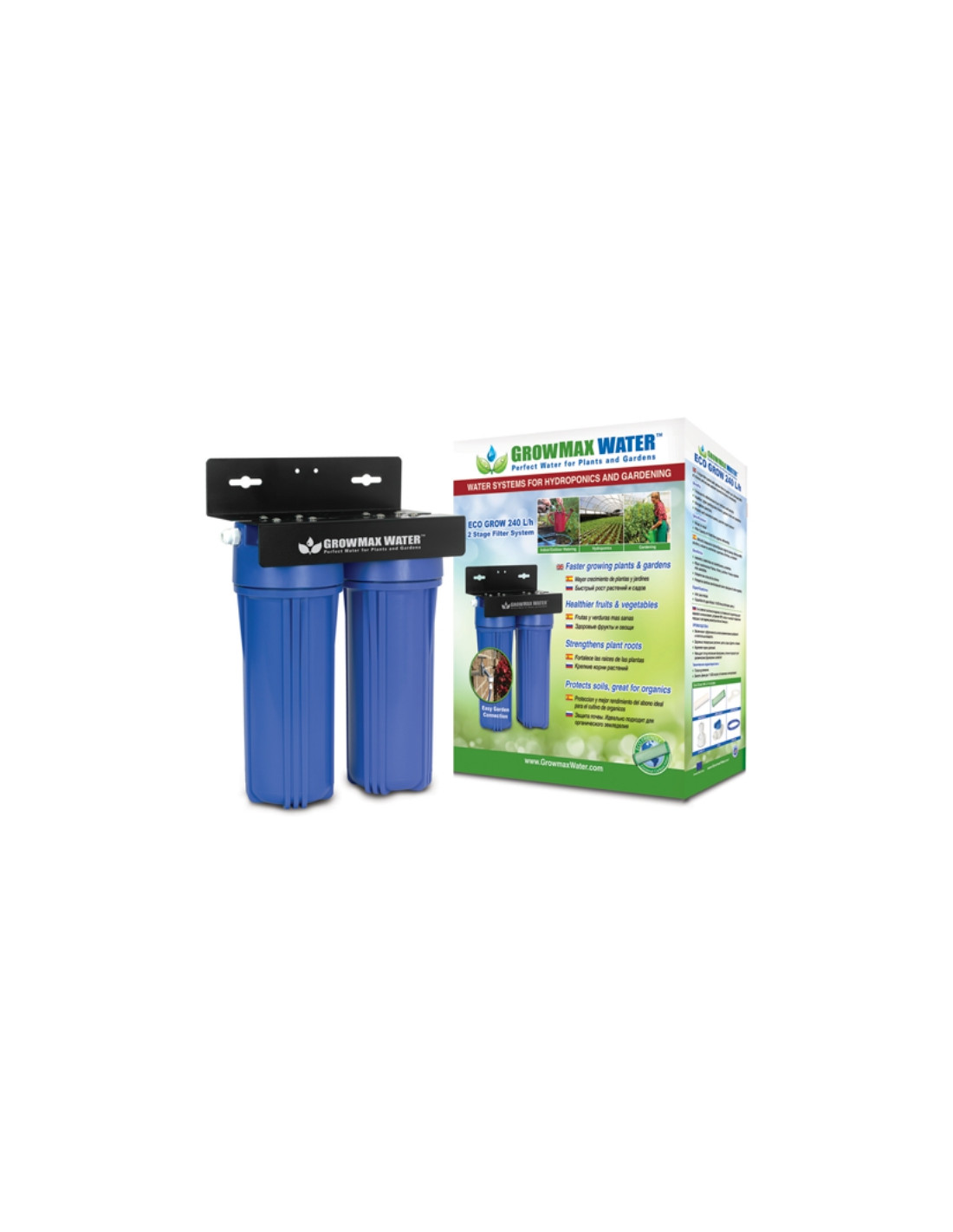 El ECO GROW 240 L/H , está diseñado para eliminar inmediatamente el cloro y los sedimentos del agua. Elimina hasta el 99% del cloro y los sedimentos mayores a 5 micras. Un agua libre de cloro y sedimentos es esencial para el cultivo y cuidado de las plantas, manteniendo los microorganismos, bacterias y hongos beneficiosos en las raíces. Estos microbios no pueden sobrevivir en un agua con cloro. Un agua sin cloro también es esencial para el cultivo orgánico de frutas, vegetales, hidroponía y cualquier otro método bioorgánico de cultivo en general. Este filtro no está diseñado para eliminar sales disueltas (PPM) del agua. La mayor parte de los PPM son minerales que sólo pueden ser eliminados con equipos de Osmosis Inversa.