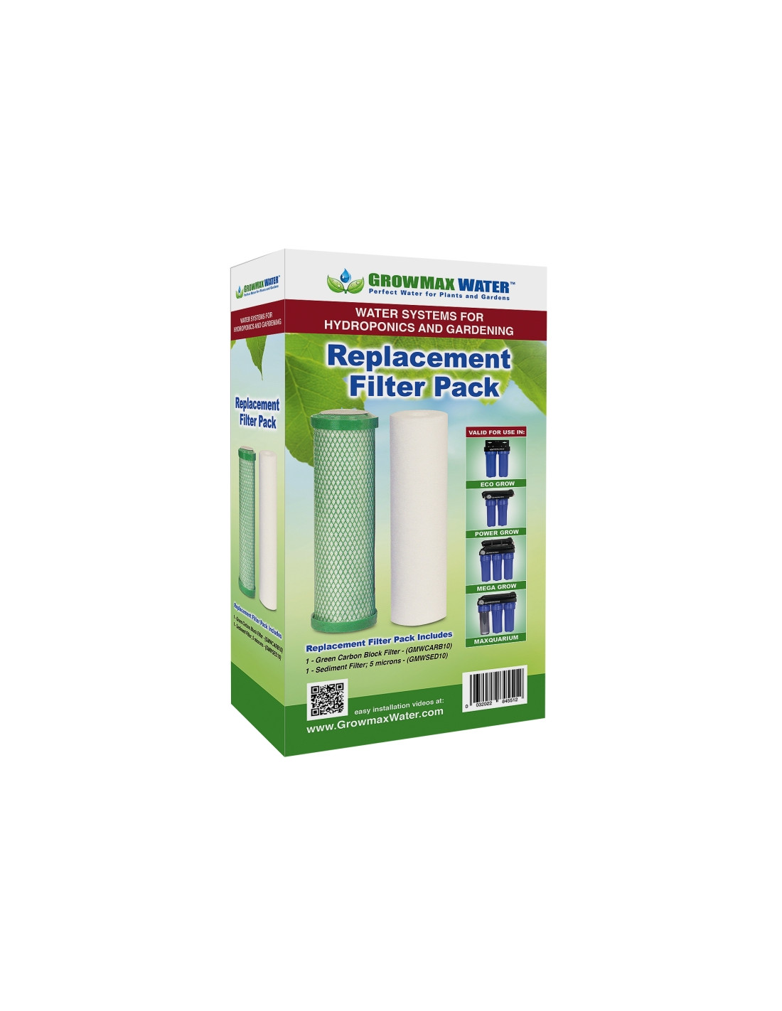 Pack que incluye 1 unidad de filtro de sedimentos de 5 micras y 1 unidad de filtro de carbon bloque ecológico válidos para sustituir los que incluye el ECO GROW, y compatibles con los que montan los equipos de osmosis inversa Power Grow 500, Mega Grow 1000 y Maxquarium 000 PPM